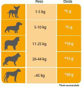 Puedes mezclarlo con su comida o con el agua y la dosis recomendada de 1 gramo por cada 5 kg de peso corporal. Los resultados son visibles desde la tercera semana de consumo y mínimo debes dárselo por tres meses.