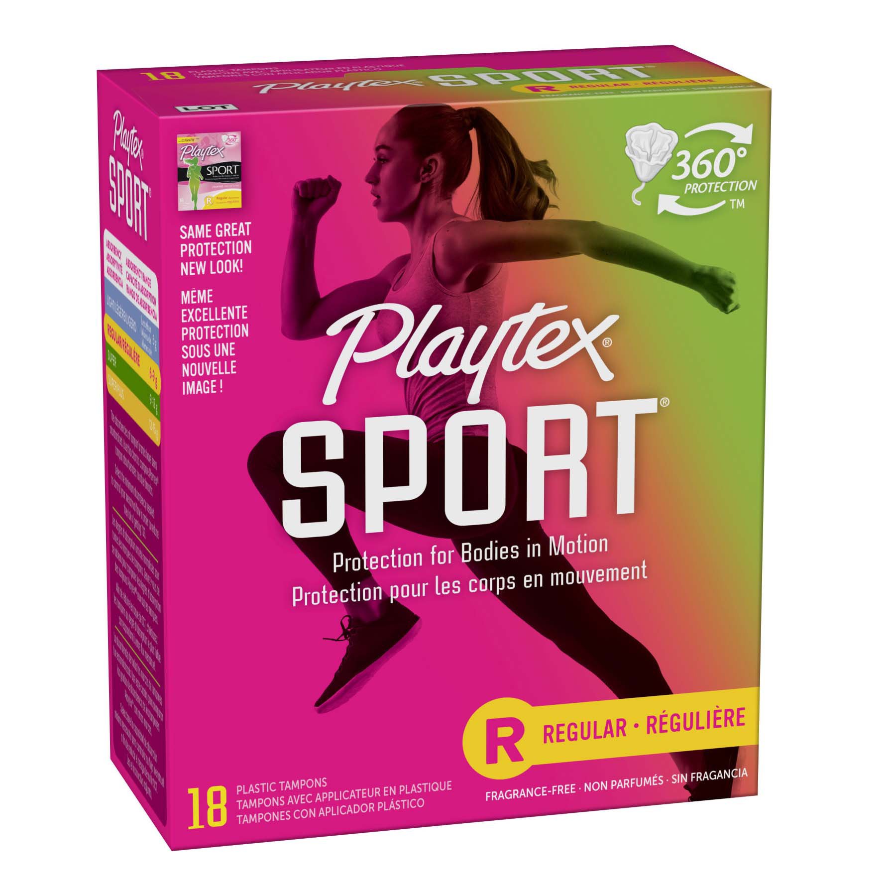 Único tampón con protección SPORT 360°, que se ajusta a tu cuerpo y movimientos para que te muevas libremente.